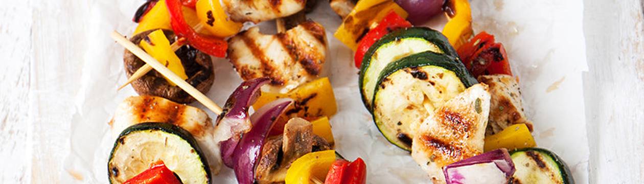 Top tip: Submerge the wooden skewers in cold water and leave to soak to stop them from burning! Top tip: Don't place the veg and chicken too close together on the skewers or they wont cook evenly!