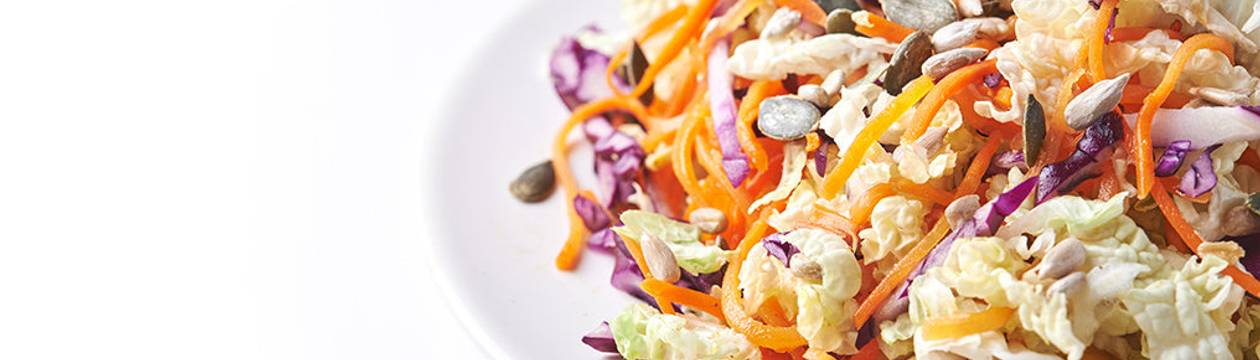 Drizzle two-thirds of the dressing over the cabbage mixture, stir until coated. If dry add the rest of the dressing and serve with a sprinkle of pumpkin seeds.