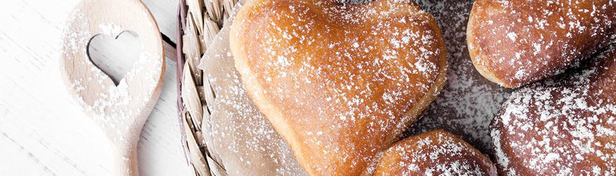 Roll the dough into equal sized balls and form a heart shape with each piece of dough.