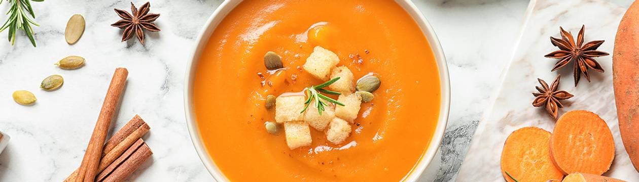 Stir the basil into the soup with 1/2 teaspoon of salt, bring to a simmer and cook for 10 minutes. Taste and add more salt and pepper if desired and serve with a sprinkle of pumpkin seeds.