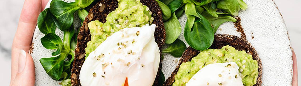 Carefully slice the avocado in half, remove the stone and scoop out the flesh. Pop into a bowl and mash with a fork. Spread on to toasted bread, pop the eggs on top and season with salt and pepper. Add mixed greens and serve!