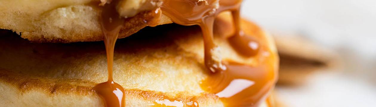 Whip up a stack of these easy plant-based pancakes and drizzle warm salted caramel sauce on top!