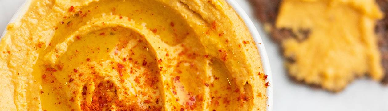 Roast for 20 minutes, toss and place back in the oven for a further 20 minutes or until tender. Leave to cool down slightly then place in a food processor and blend until a puree forms. Add the tahini and salt. Squeeze in the lime juice and pulse.