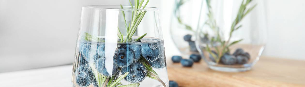 Place a handful of frozen blueberries into a glass with a dash of soda water. In a cocktail shaker add the squeezed lime wedge, gin, lime cordial, celery bitters and some ice and shake. Strain the liquid into the prepared glass and serve with a sprig of rosemary.