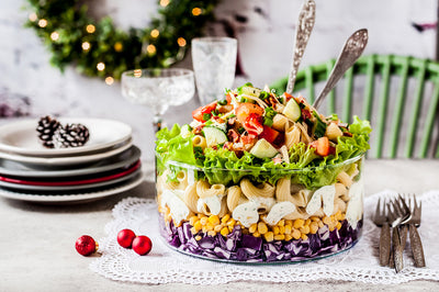 Wow a crowd by placing this colourful salad in the middle of your Christmas feast... The best part about this recipe is anything goes. Layer up your left overs and dig in!