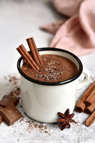 Indulge in this warming cup of chocolatey goodness stirred with a cinnamon stick or two!